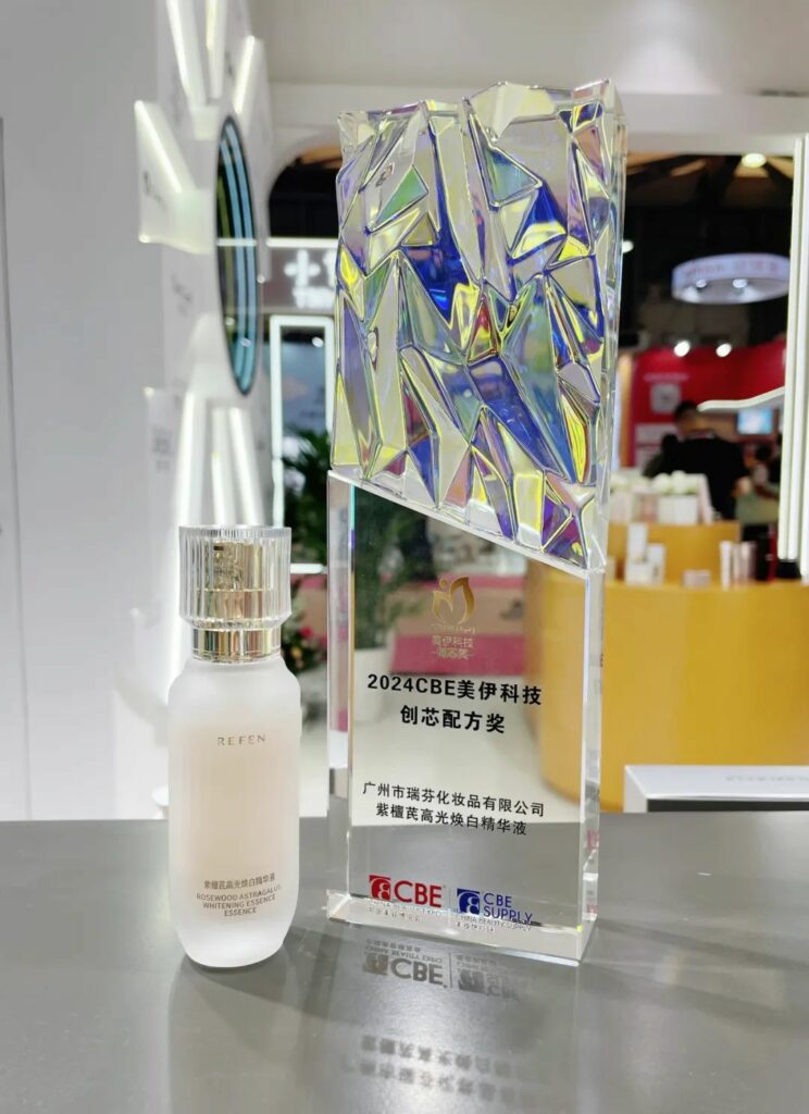 其中瑞芬明星爆品「紫檀芪高光煥白精華液」更是榮獲“2024美伊科技-創(chuàng)芯配方獎(jiǎng)”。