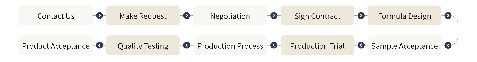 We will do our best to help you realize even a fleeting thought in your mind, such as product design, finding packaging materials, arranging the delivery, providing warehouse hosting, and other tedious aspects. We can solve it for you. Therefore, you can spend your main energy on market development, and let us cooperate with you on the rest; from formula research and development to production and filling, packaging material sources, packaging design, warehouse logistics, etc. We can help you create new products easily.